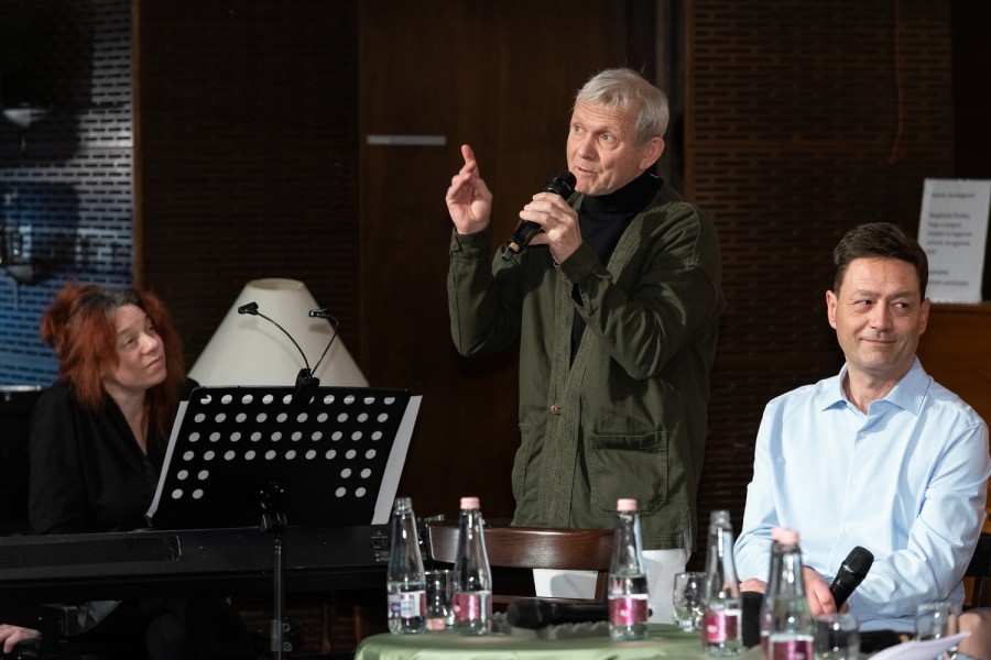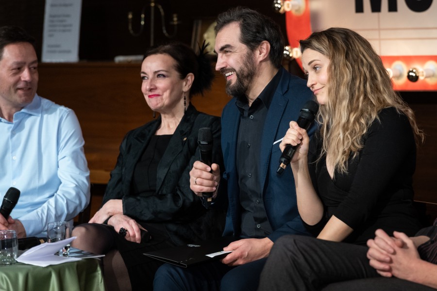 A jó hangulatú, vidám estén a színészek több részletet megosztottak a két darab zajló próbáiról és a művekről alkotott véleményüket is megismerhette a közönség.