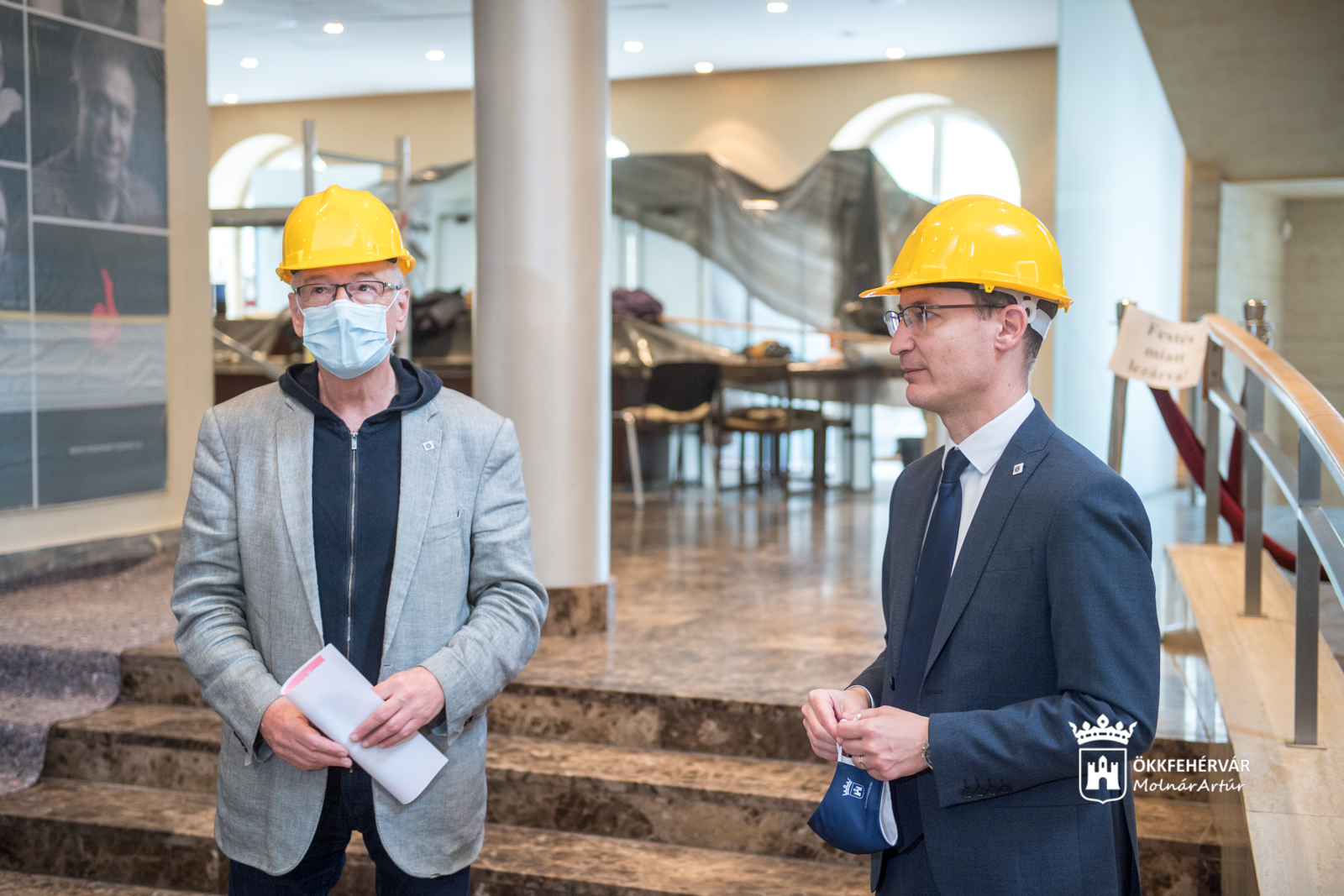 „Nagyon nehéz és bizonytalan időszakon van túl a színészszakma is. Az alapvető működés sem volt biztosítható, így ezt az időt kihasználva a Polgármesteri Hivatal beruházási szakembereivel és a színház szakembereivel egyeztetve egy beruházási és felújítási programot sikerült elindítanunk. Ennek egyik látványos eleme érinti az intézmény fogadótereit is.” Az épület jelenlegi belső kialakítása 2005-ben készült, azóta az állandó és intenzív kihasználtság következtében a falak elpiszkolódtak, a mosdókhoz vezető folyosók falsarkai letöredeztek, és egy csőtörés következtében a zsöllyékhez vezető falszakasz leázott. Az emeleti büfé falain rögzített, folyamatosan változó kiállítások jól látható nyomot hagytak, és bár a színház dolgozói igyekeztek elfedni a falakon keletkezett hibákat, a foltozgatás nem méltó a város egyik fő kulturális színteréhez. Így a mostani belső munkálatok során festésre kerül sor – egy speciális, többrétegű felhordási technológiájú festékkel.