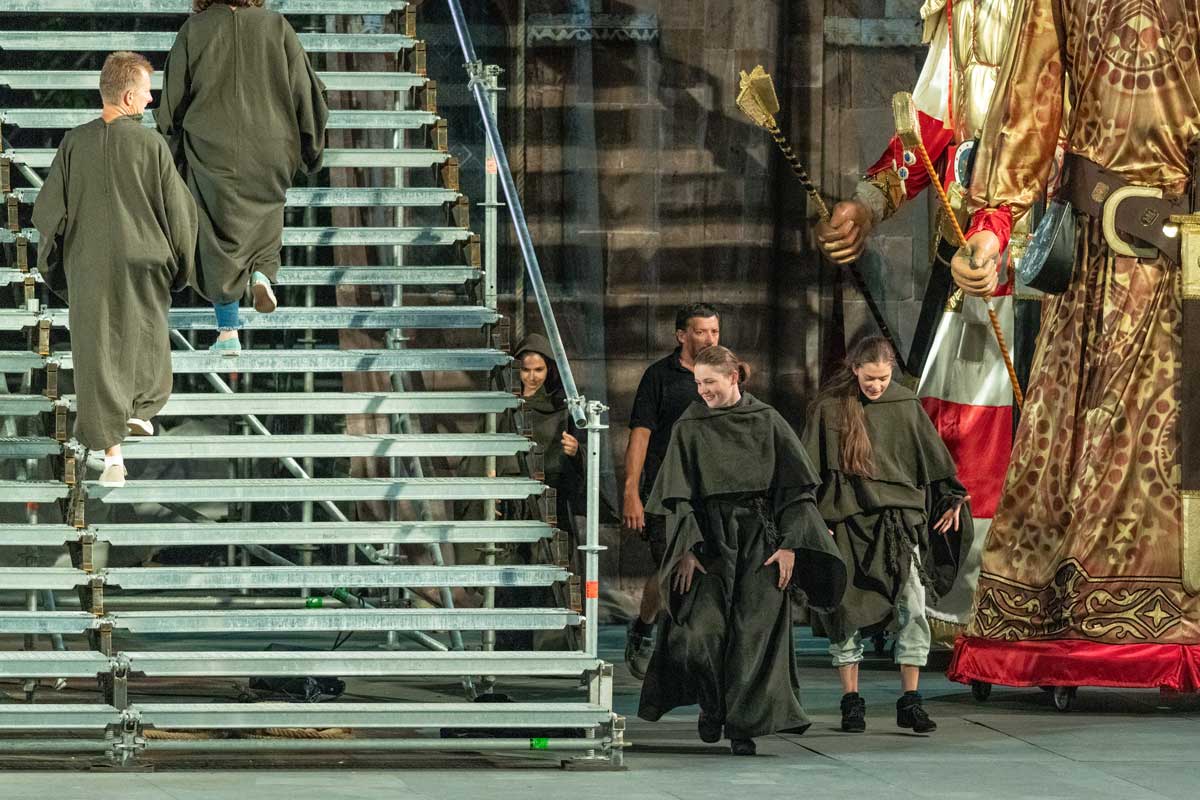 A Nemzeti Emlékhelyen záruló egy évtizedes programsorozat utolsó bemutatóján III. András élete, uralkodása elevenedik meg a színpadon. Mint ahogy eddig minden évben, idén is nagy odafigyeléssel, régészek által készített térkép alapján építik fel a nagyszabású előadás díszletét, vigyázva a műemlékekre.
