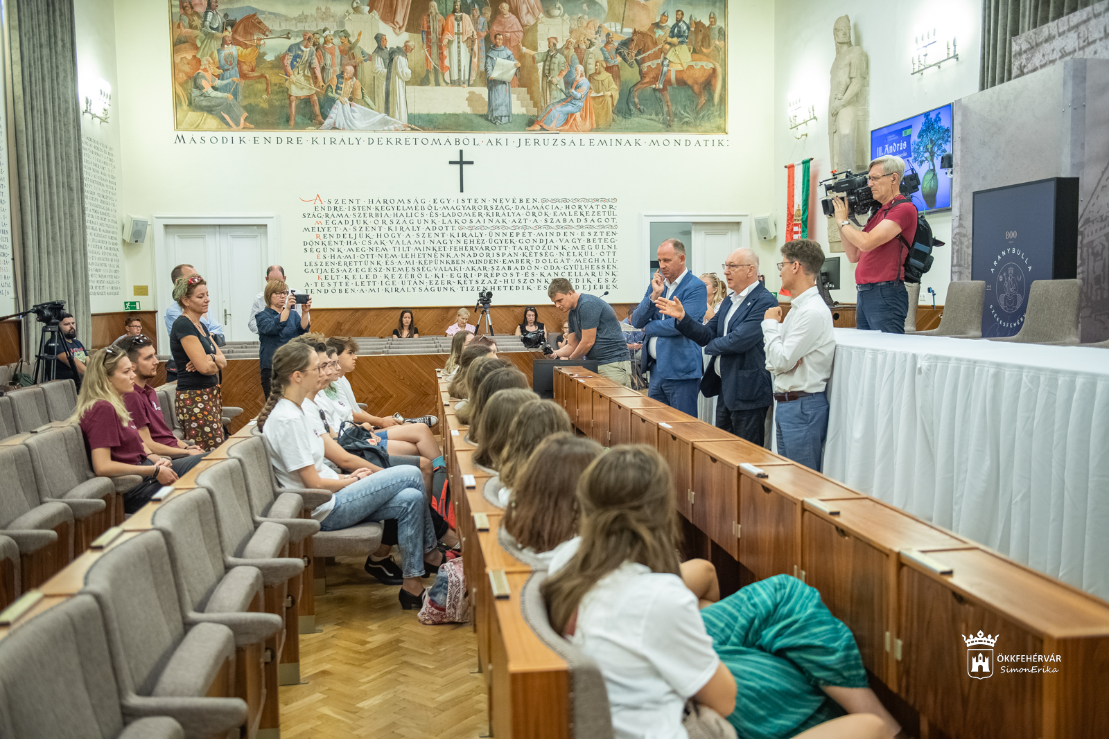 A Nemzeti Emlékhelyen egy szál virággal és főhajtással tisztelegtek a Koronázási Szertartásjáték alkotói hétfőn délelőtt, majd a megemlékezést követően a Szent István Király Múzeum Rendház épületben az olvasópróbával megkezdődött a felkészülés a III. András – Az utolsó aranyágacska című szertartásjátékra.